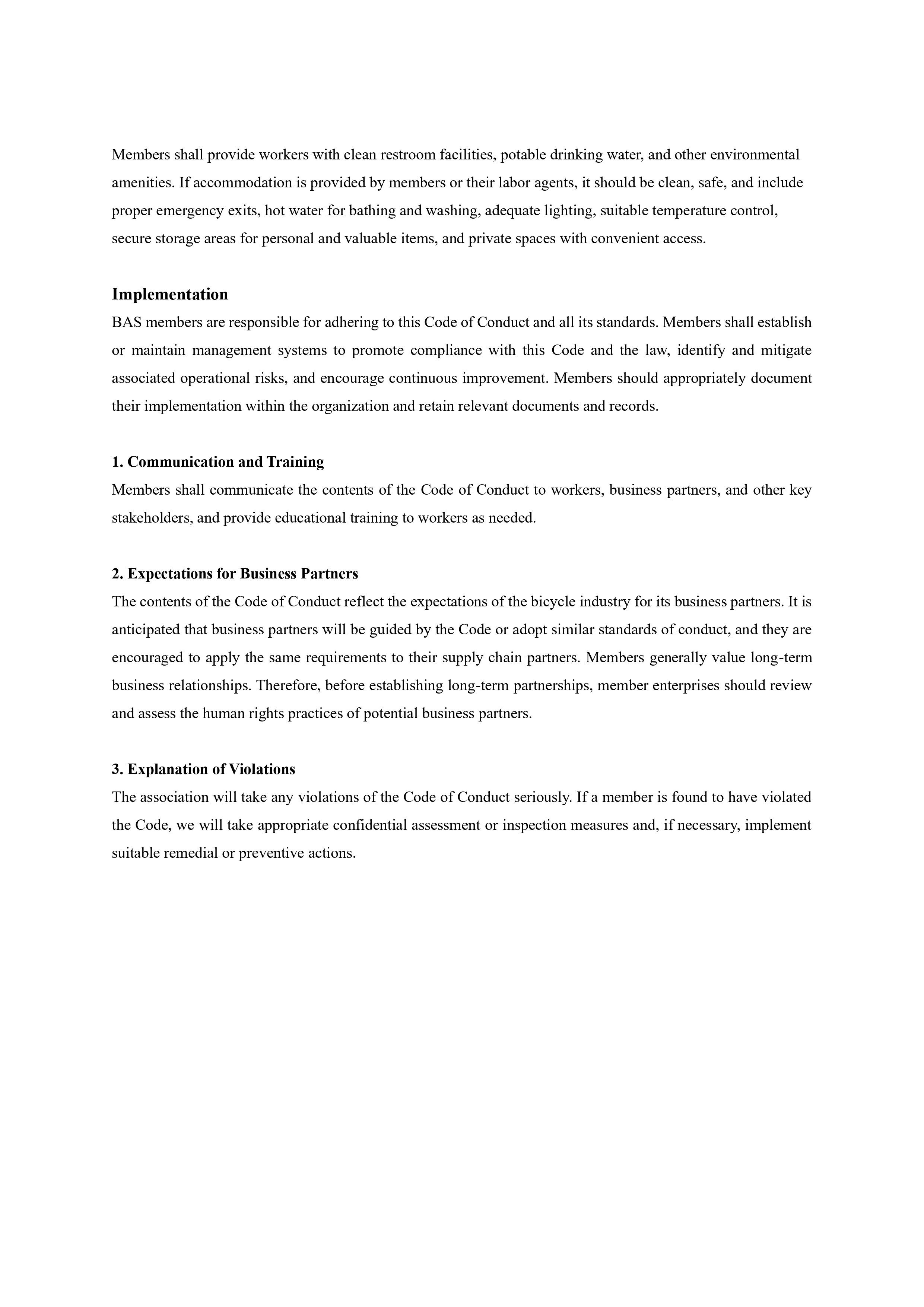 Human Rights Code of Conduct - Bicycling Alliance for Sustainability
