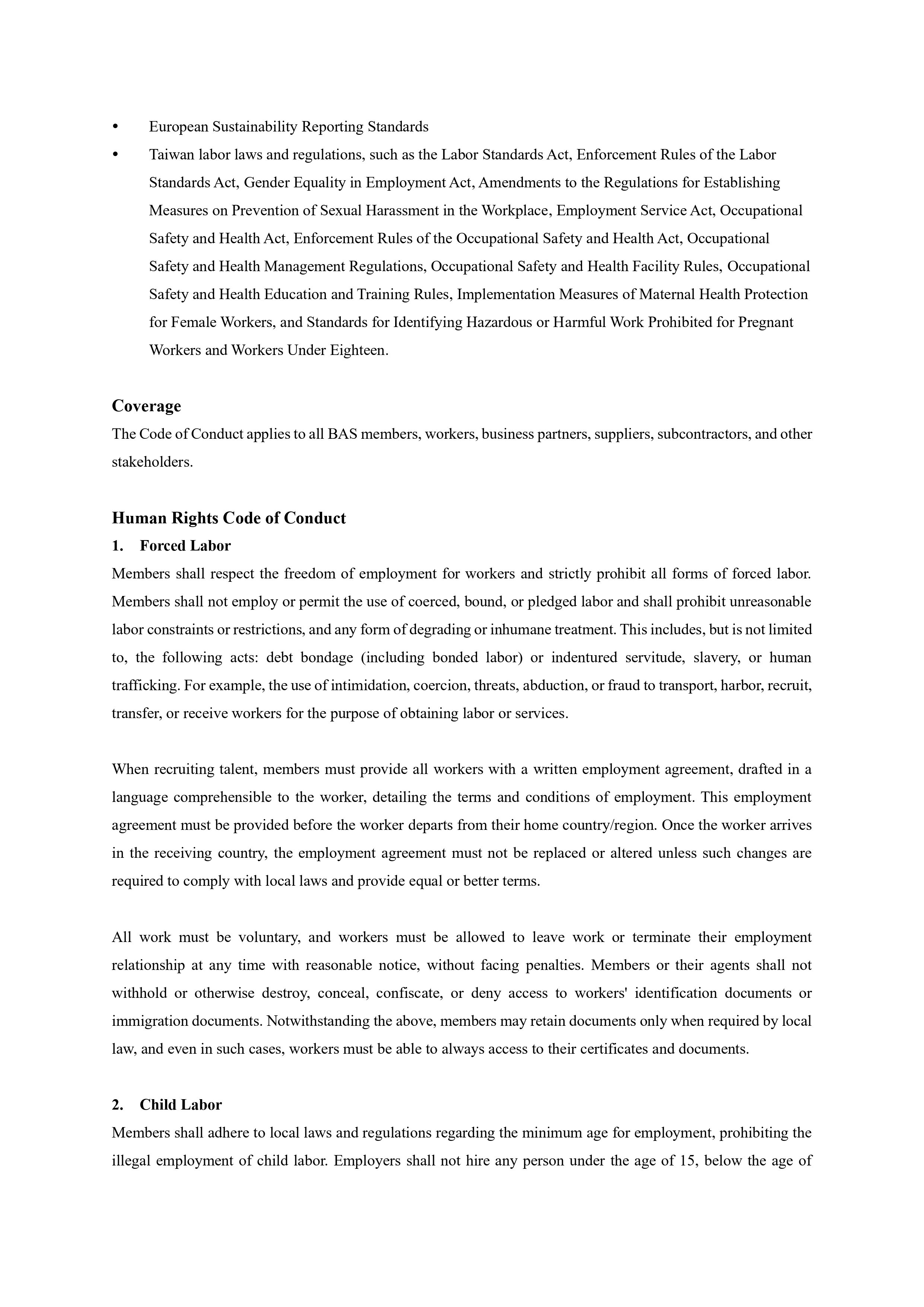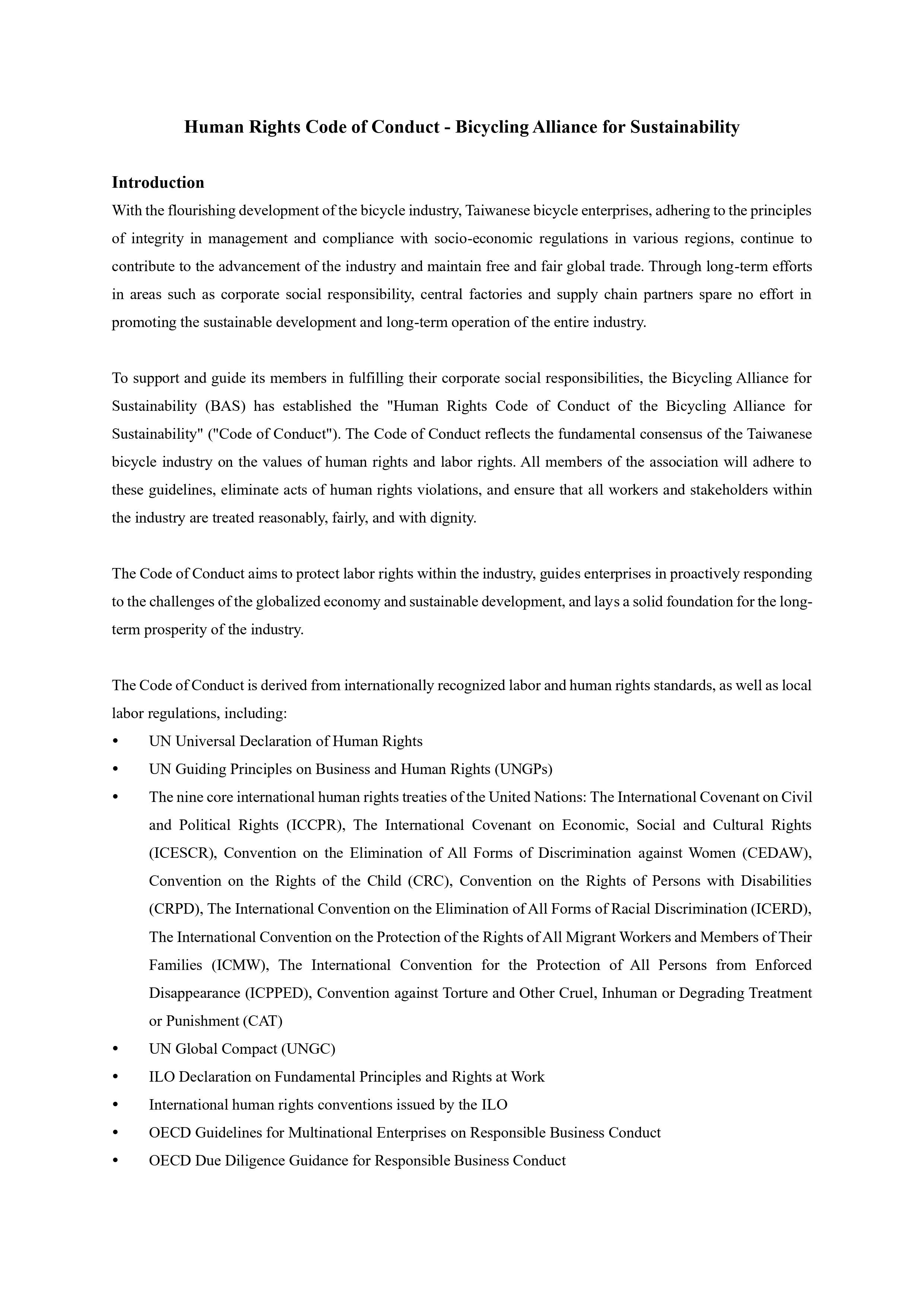 Human Rights Code of Conduct - Bicycling Alliance for Sustainability